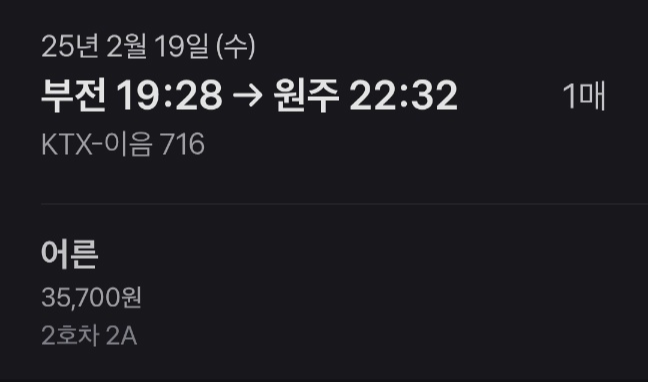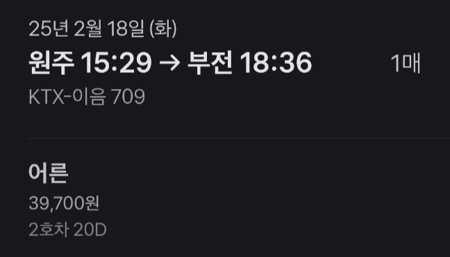 ② KTX-이음> KTX (원주역 출발 – 경주 환승 – 부산역 도착)