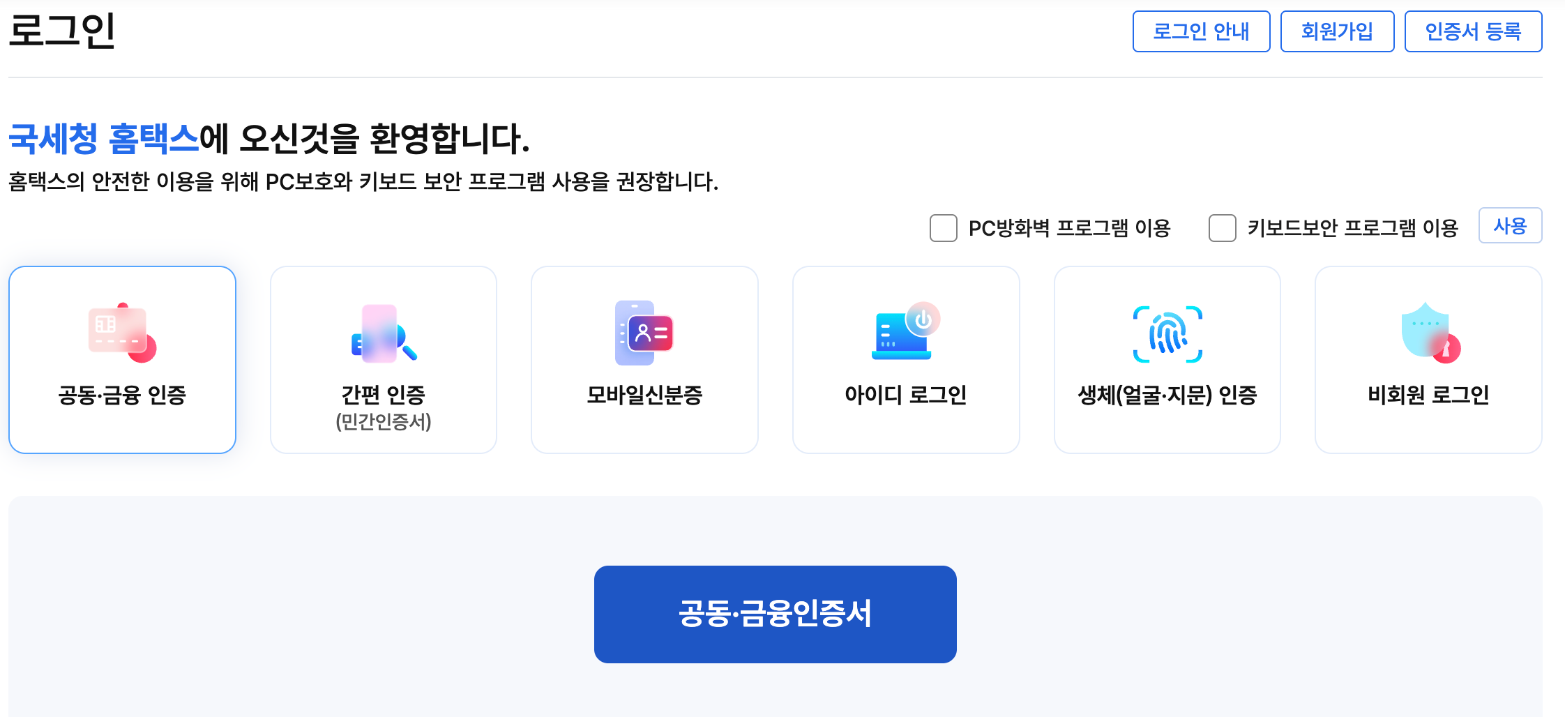- 공동인증서(구 공인인증서)로 로그인